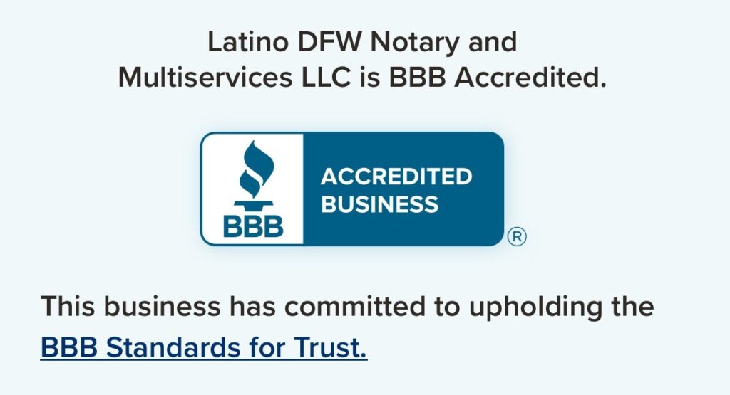 Contact Latino DFW Notary & Multiservices LLC at (972) 469-9106. We speak English and Spanish it will be our pleasure to assist you.